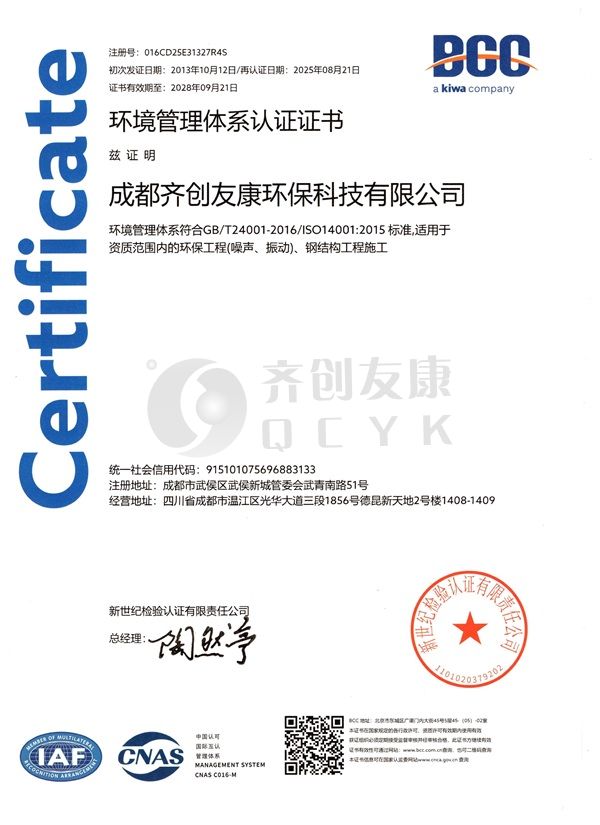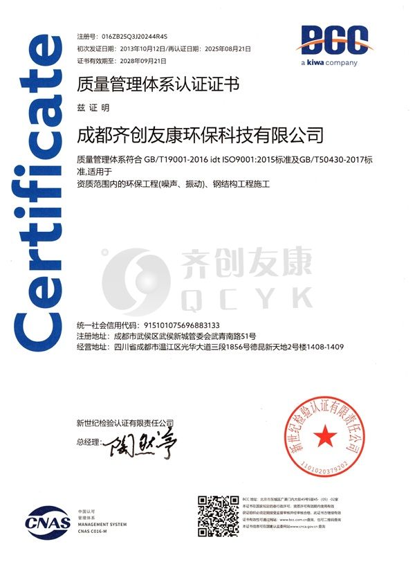 Founded in 2011, Chengdu QCYK ECO Technology Co., Ltd. is a professional service provider focusing on solving environmental noise pollution, using acoustic principles, material science and engineering technology to provide customers with customized noise and vibration control solutions through a series of means such as evaluation, design, product manufacturing and construction and installation to achieve acoustic environment improvement and compliance.