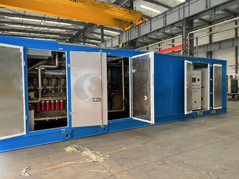 The generator room intake and blow-off systems possess a silencing function, with forced intake and natural blow-off. The generator set exhaust port is equipped with a silencer, and a CO2 fire prevention system is built in. The requirement of noise level ≤85dB(A) at 1m outside enclosures is met.